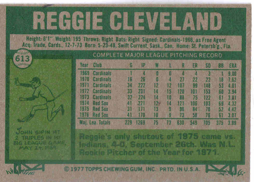1977 Topps Baseball #613 - Reggie Cleveland